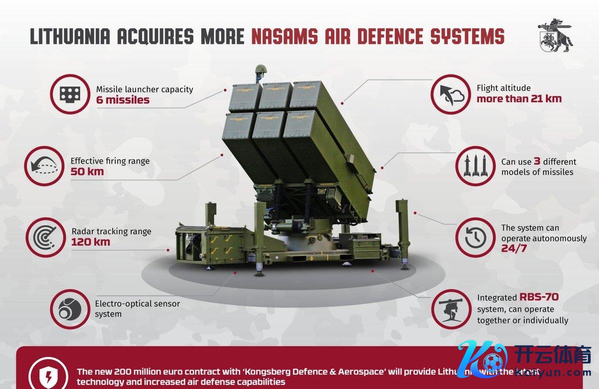 NASAMS防空导弹系统被称为“国度先进低空导弹”系统,其特色是已毕了散播式和集聚化的缠绵。该系统主要用于抑制中近程观点,恰当陆基野战部署。其研发者包括雷神公司与康斯伯格公司,启程点是专为挪威皇家空军而缠绵,其后被好多欧洲国度及好意思国所采购。一套设施的NASAMS防空导弹系统往往包含3个或更多牵引式辐射车,每辆辐射车可搭载6枚型号为AIM-120的防空导弹。值得细心的是,NASAMS实践上是一种行使为空对地作战使用的空气抑制时刻。同期,该系统兼容基本型和增程型AIM-120,同期也不错配备AIM-9“响尾蛇”空气爆炸性制航空技能。此外,NASAMS还标配AN-MOQ-64雷达,并需配备一套光电录像车及火力分拨车辆。