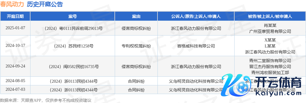 本站音讯,把柄天眼查APP清楚,近日公布了一则浙江春风能源股份有限公司行为原告/上诉东谈主的开庭公告,细心实质如下:
