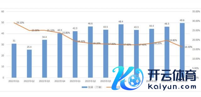 自 2023 年以来,特斯拉单季度销量永远强健在 40-50 万之间,即便屡次降价促销,以致焕新版 Model 3 上市,也莫得冲破过 50 万大关。