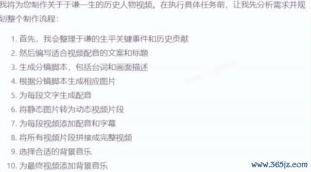 然后把柄这个想路少许点究诘于谦的生平,编写案牍标题和相应的分镜剧本,接下来,又会把柄这些分镜生成相应的图片,再把图片生成视频片断,临了再像一个后期相似,把这些片断素材全部整合到一谈编订成成片。